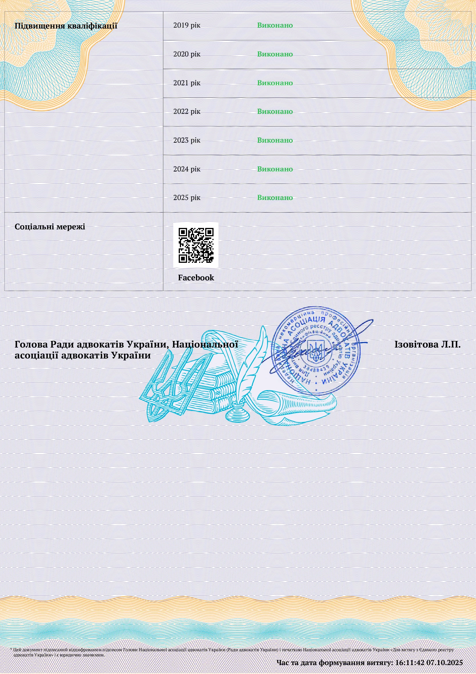 ✅ Активный член Ассоциации украинских юристов.